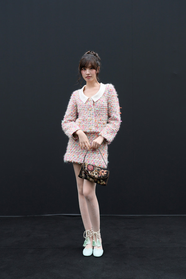 리즈는 다채로운 컬러 팔레트를 바탕으로 섬세하게 완성된 트위드 셋업에 태슬 디테일이 돋보이는 슈즈, 그리고 발렌티노 가라바니 소프트 베인 백을 매치해 화려하면서도 사랑스러운 룩을 연출했다.